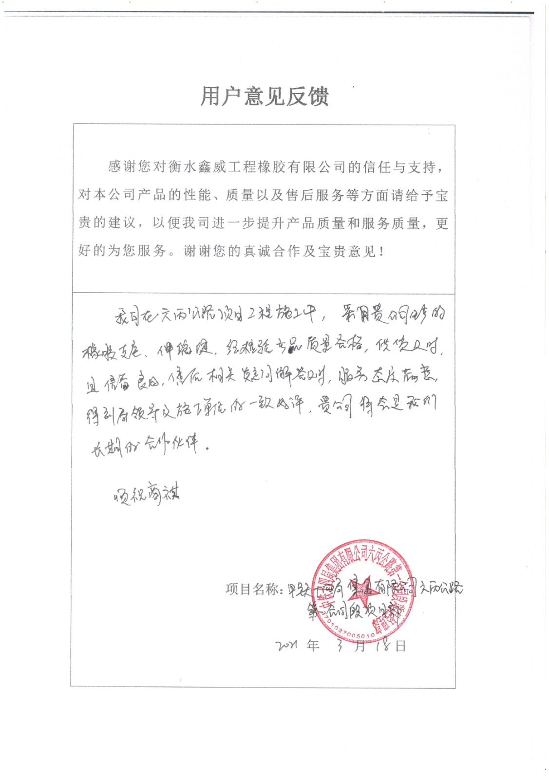 盆式橡膠支座主要适用於跨度大,位移量大,轉角大的橋梁,根據不同受力情況設計不同的型号,價格因此不同,報價請提供型号或圖紙。以下是鑫威客戶使用産品的意見反饋表。